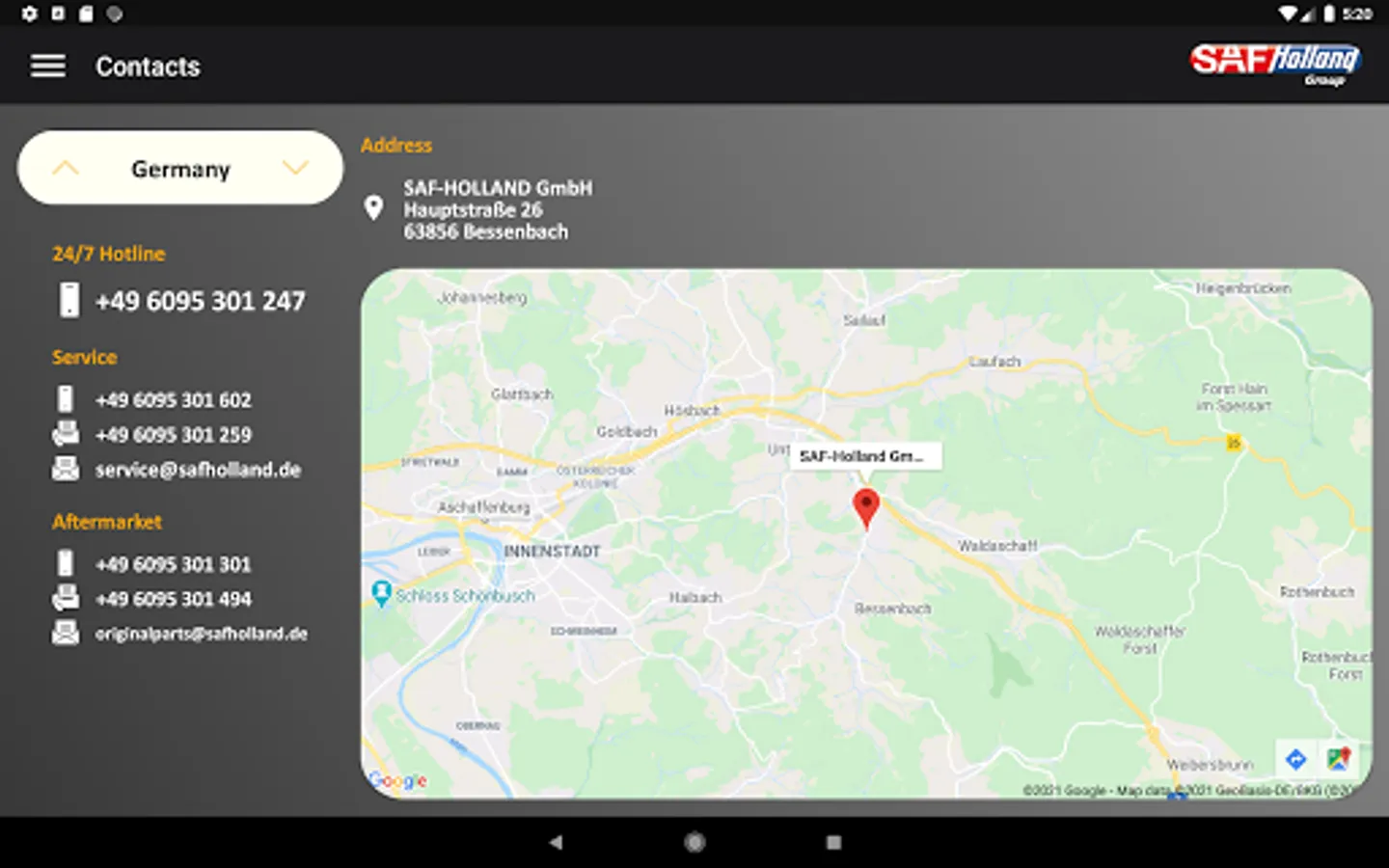 In addition, SAFH is not liable for the accuracy, completeness and up-to-datedness of the data and information generated by the application, as far as such disclaimer is permitted by applicable law. Damages resulting from injury to life, limb or health and other damages based on a grossly negligent or intentional breach of duty by SAF-HOLLAND are not covered by the above-mentioned disclaimer.
