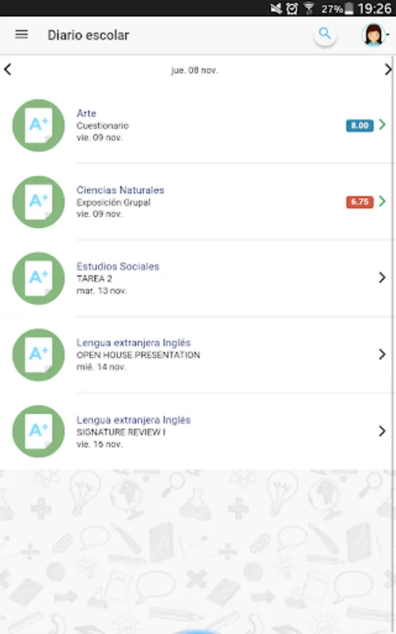 - Notifications of events, appointments, messages, homework, school diary, follow-up and activities.