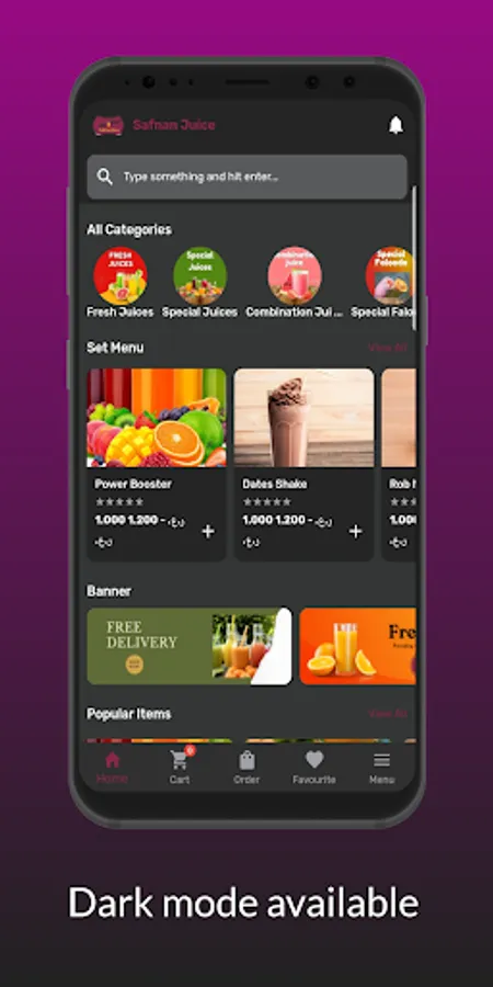 User can order their favourite juices and snacks here.