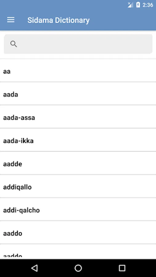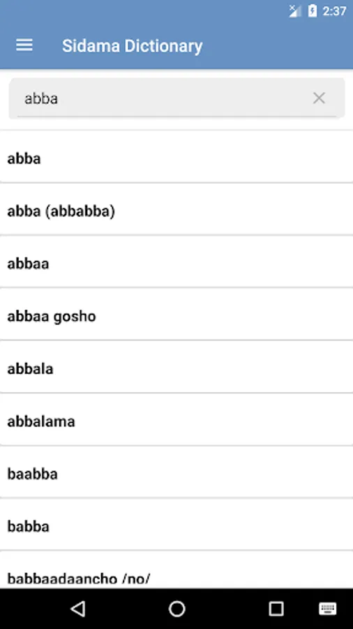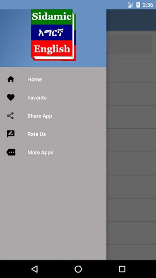 Sidama dictionary that has translations in Amharic and English, it has many useful features. With Sidamic to Amharic English Dictionary, you can add the word you like to favorite and you can access it later.