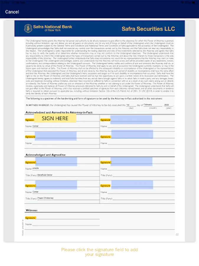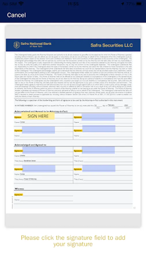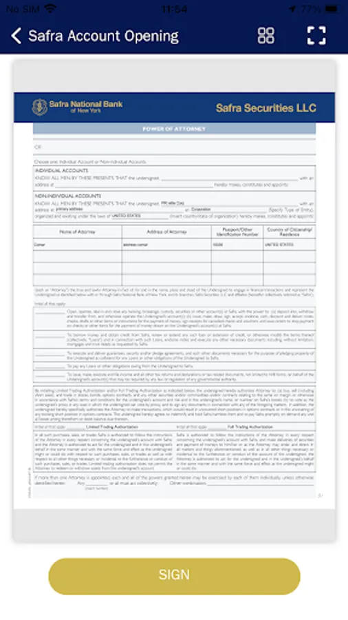 The SafraLink E-Sign App helps you review, validate, and sign important documents related to your account at Safra National Bank of New York, Safra Securities, LLC, and/or J. Safra Asset Management (“Safra”). It will help you to communicate with Safra on important decisions and agreements in near real time, while also helping to save you time and provide greater convenience.