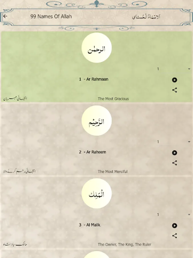 Asma Ul Husna Is Added, Where you can read or play 99 Names of Allah.