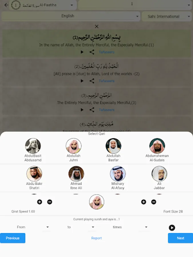 QuranHub is powerful research tool for Quran which more than 85 translations of Quran in 46 languages and 13 Tafaseer in 3 languages.