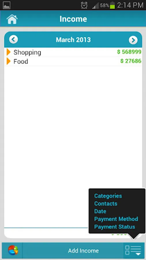 - Group By : categories, contact, payment status, payment method, date