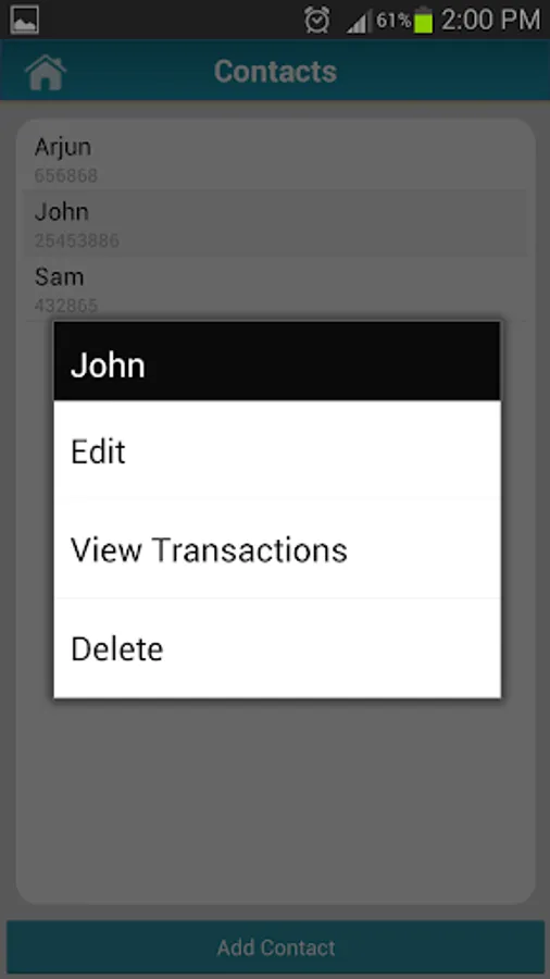 - View Transactions of particular account/contact/category