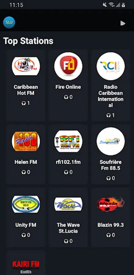 Currently supported stations include Blazin' 99.3, Caribbean Hot FM, Fire Online, Helen FM, Kairi FM, Radio Caribbean International, Radio Saint Lucia, rfi102.1fm, Rhythm FM, Rizzen 102 FM, The Wave St.Lucia, Unity FM and WVent.