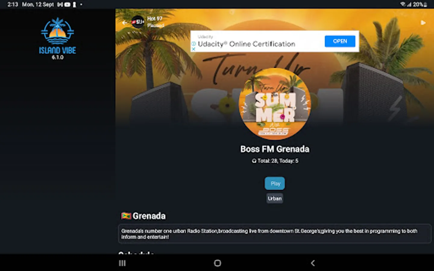 Boss FM Grenada, Chime FM 100.9, City Sound FM, Dejavu HD, Fresh FM Grenada, Kiss 101, Magic 103 FM, Power 95.1 FM, Real FM Grenada, Vibes, Wee FM