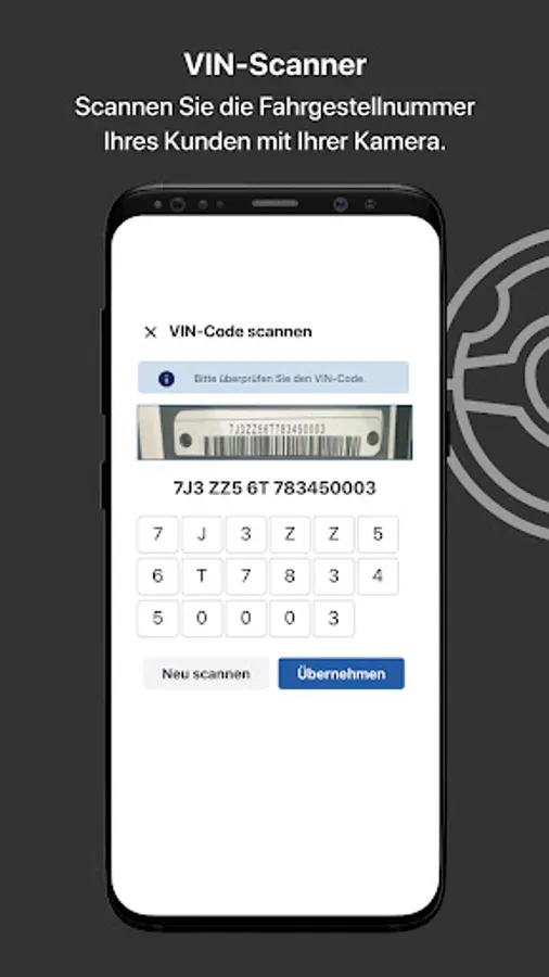 Save precious time by eliminating guesswork and guaranteeing a perfect fit for every client. RapidBox's powerful VIN lookup provides precise information on specific parts and specifications based on the vehicle identification number. Whether you're looking for automotive repairs or replacement parts, count on RapidBox for reliable details. With our VIN scanner, you can quickly and easily scan the VIN directly on the vehicle with your smartphone and have it automatically recognized.