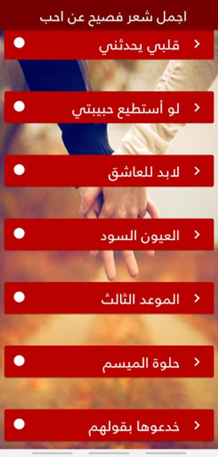 Ajmal Shaer Faseh It is an application that contains poems about love by the most famous poets with Ajmal Shaer Faseh