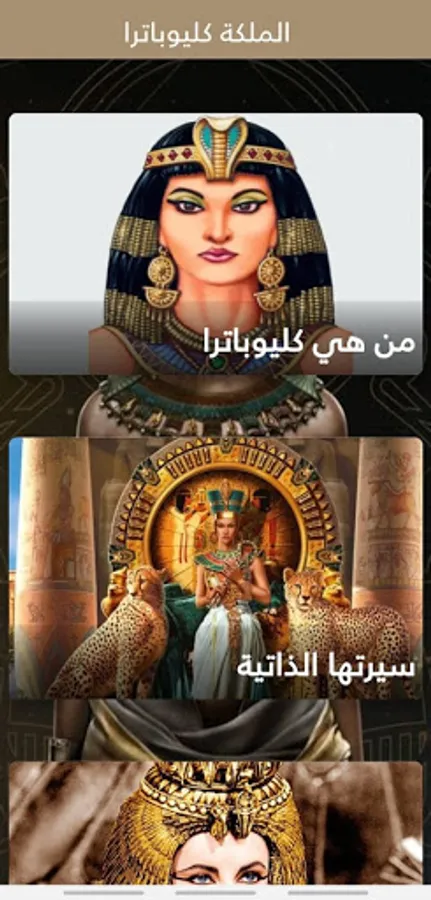 Queen Cleopatra is an application that contains many stories, novels and adventures in the life of this famous pharaonic queen with a distinctive storytelling