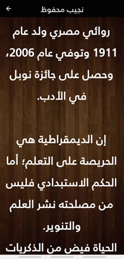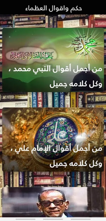 It also contains the sayings of the Prophet Muhammad as well as the sayings of Imam Ali about injustice, as well as the sayings of Naguib Mahfouz, as well as sayings and wisdom, as well as the sayings of Ibrahim al-Feki