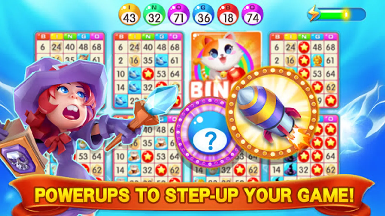 - WIN powerups in and unlocked at higher levels of fun bingo games