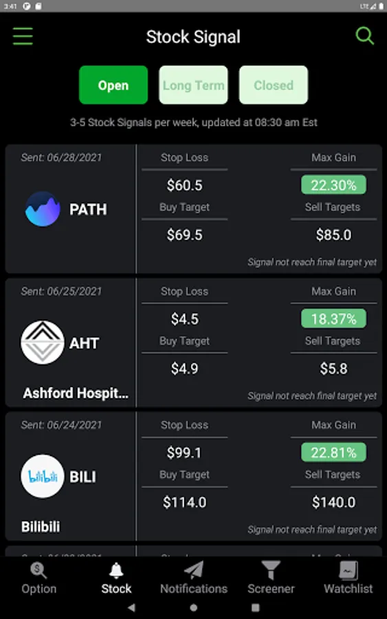 Option Signal is an advanced app for stock and option investors. Find out about big movements as they happen and have the tools to act on them. Option signal help you stay on top of the market and get insights wherever you are. Swim with option alerts with tons of features, and more coming all the time.