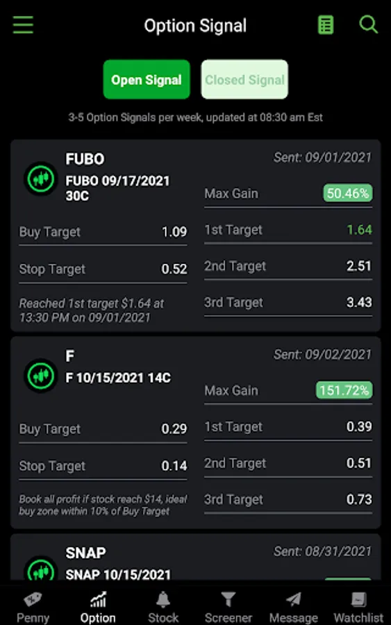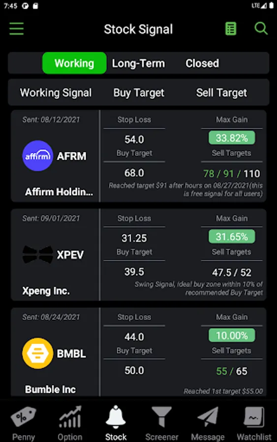 Practice your trading strategies with stock signal and receive timely stock notifications via push notifications center for investment opportunities every trading day