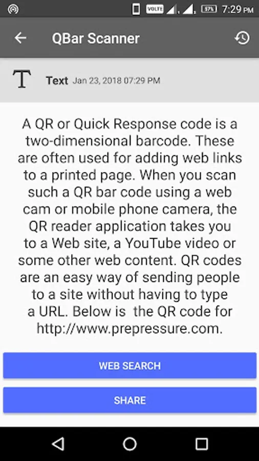 ●Share scanned Qr code text and link from Qbar - Qr and Barcode Scanner app.