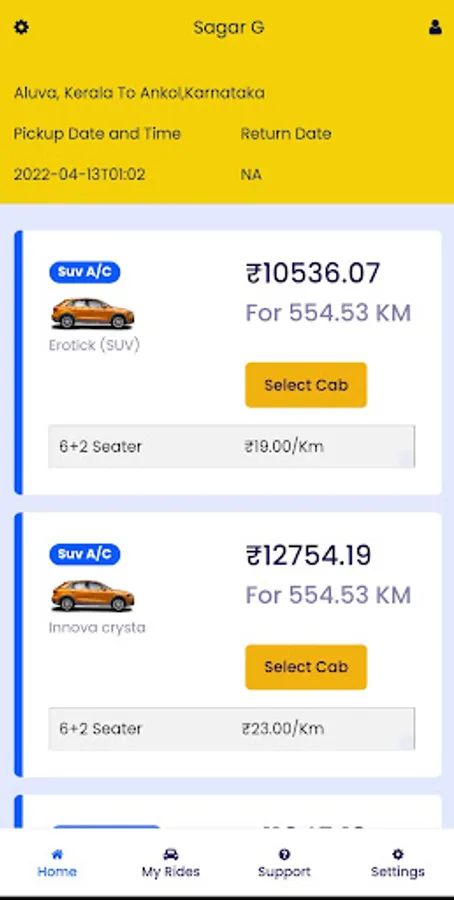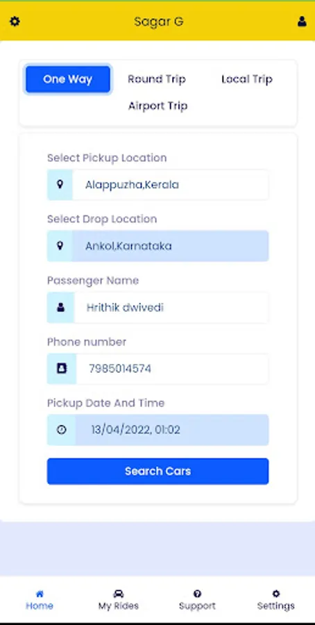 Sagar G Cabs is a cab booking app in Indjia. Book easily, pay in-app quickly and complete your trip safely!