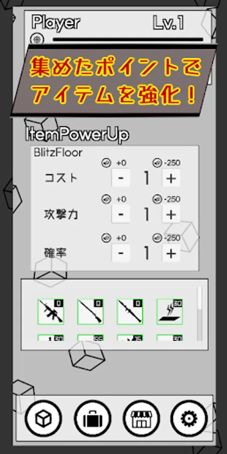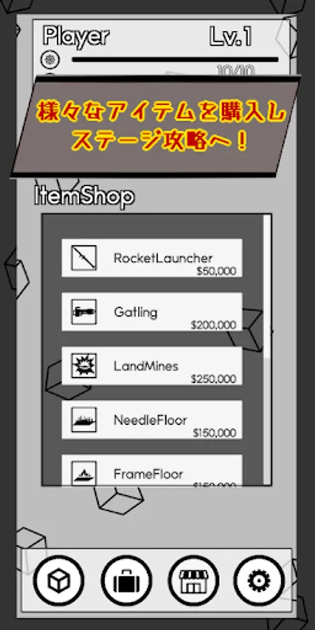 Purchase, select, and enhance your favorite items to challenge various stages!