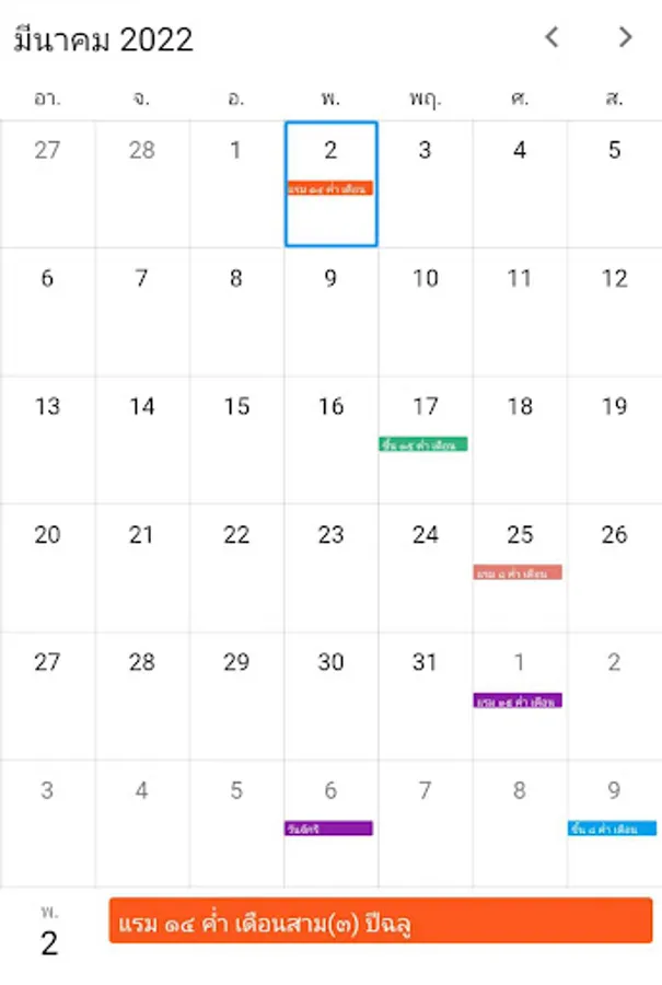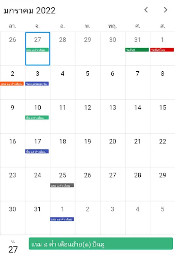 The calendar shows the holy days of each month. for Buddhists to prepare for meetings to listen to sermons from monks at the temple