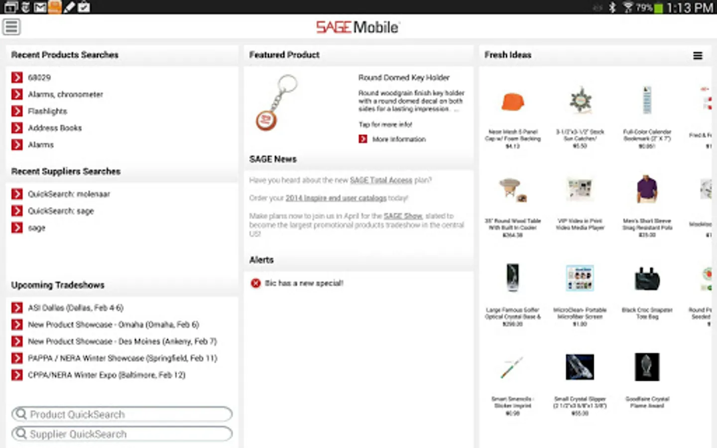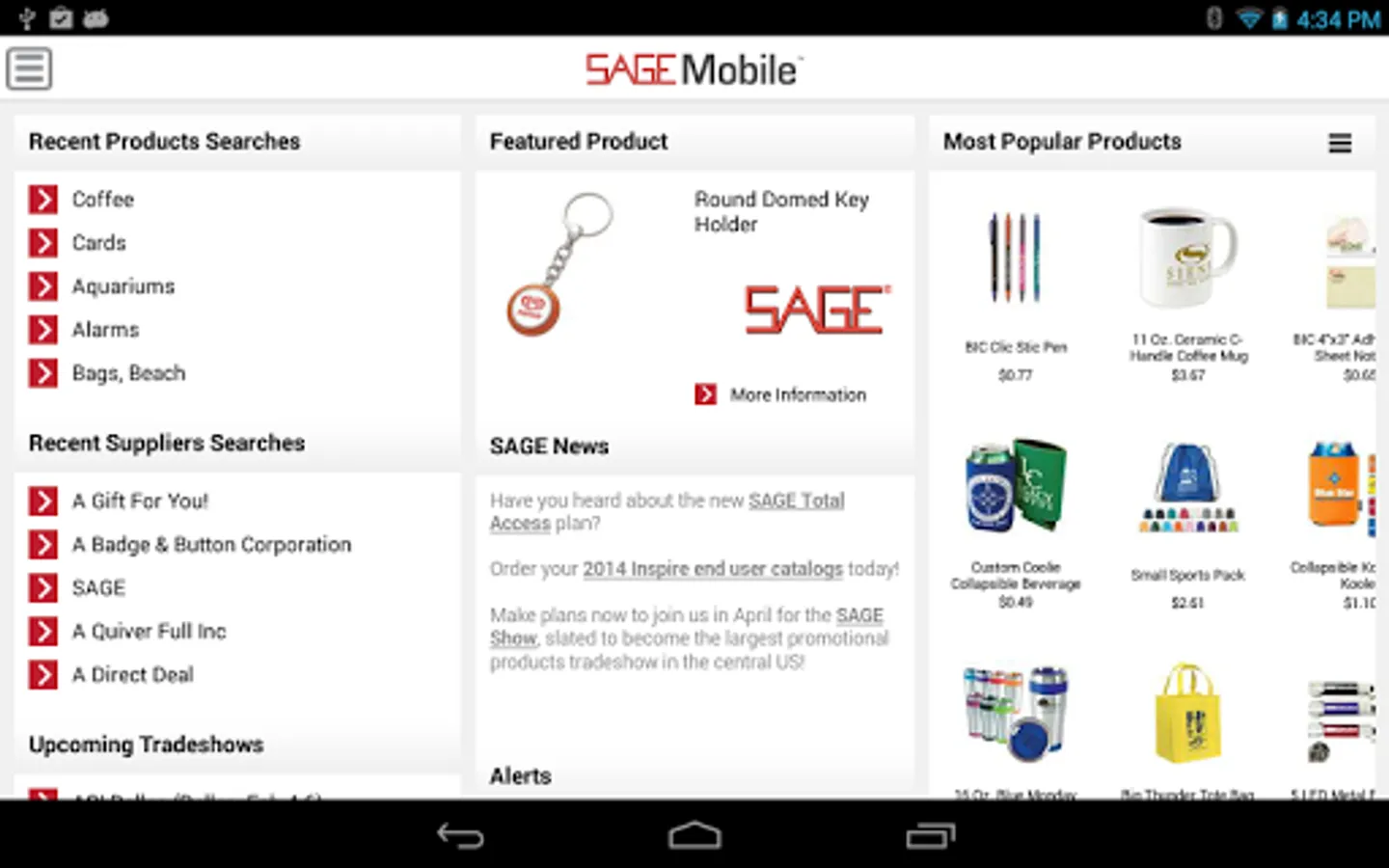 Search for promotional products on the go with SAGE Mobile, the industry's first and most popular complete mobile research solution. Perform product and supplier research, access your client address book and project center, plan your next industry trade show, and even process credit cards. Available for promotional products distributors only, subscription required.