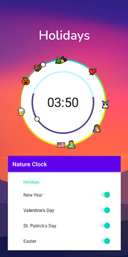 New Year, Valentine's Day, St. Patrick's Day, Easter, April Fools' Day, Mother's Day, Father's Day, Oktoberfest, Halloween, Day of the Dead, Thanksgiving, Christmas