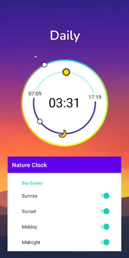 Sunrise, Sunset, Midday, Midnight, US stocks open, US stocks close