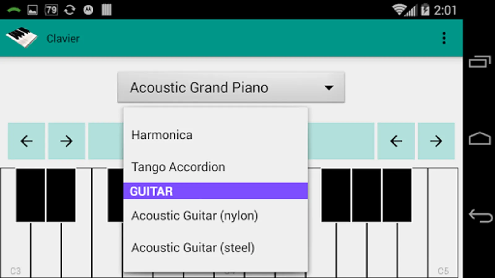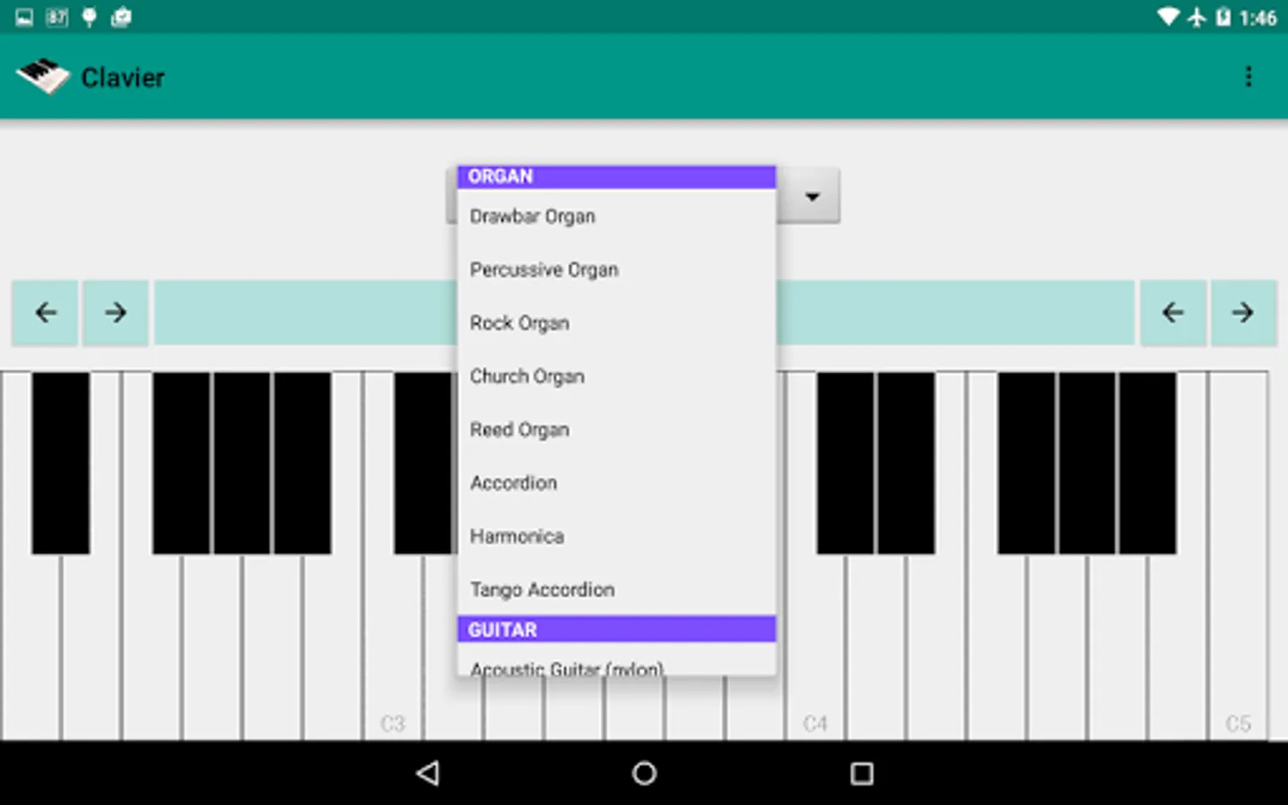 The app uses the instrument samples already built in to your Android device. Some instruments sound better than others, and several instruments do not implement the full music keyboard range-- a limitation of Android and/or your particular hardware. But with so many instruments to choose from, you will have plenty of choices to stimulate your creative abilities.