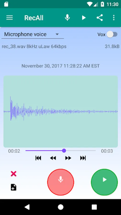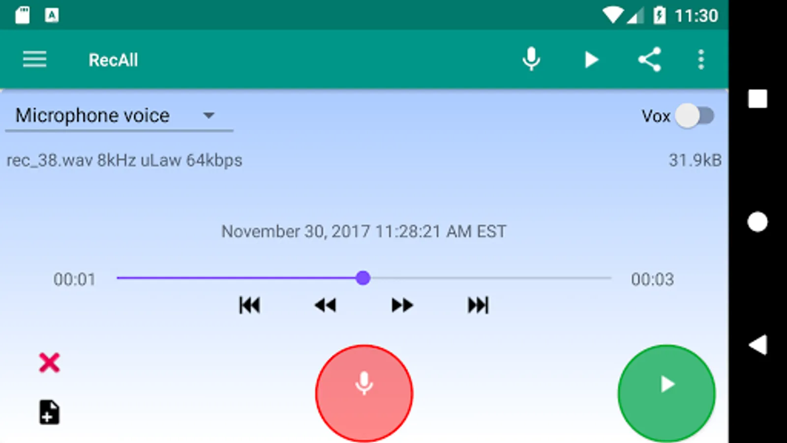 Before uninstalling: The RecAll app does not request storage permission, using its own private directory. Be sure to save or share any audio recordings you record with the app prior to uninstall, since audio in the private directory will be deleted during uninstall.