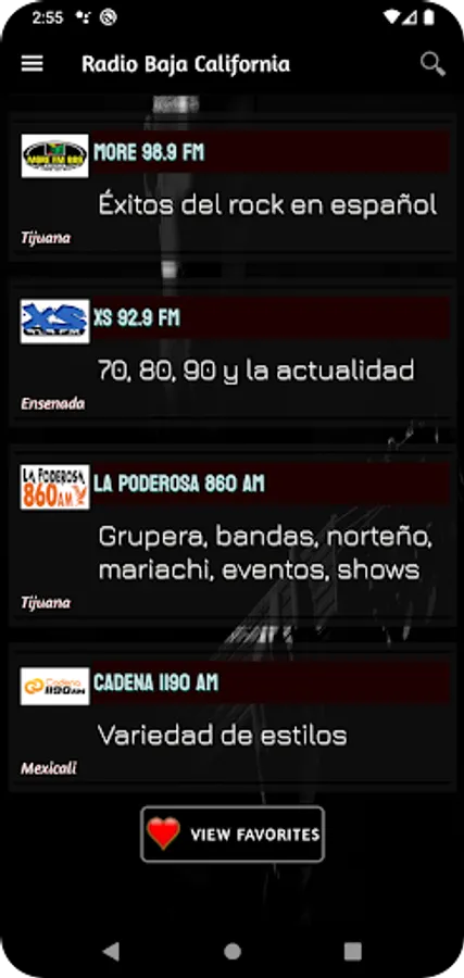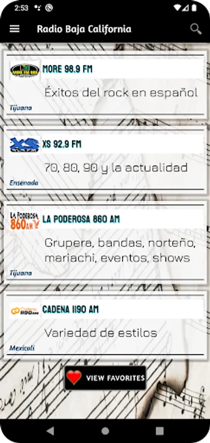 In this app you will find music from the peninsula of Baja California, south and north, you can listen to different musical genres such as banda, norteña, rock, ranchera music, electronic music, punk, ballads, cumbias, corridos, etc.