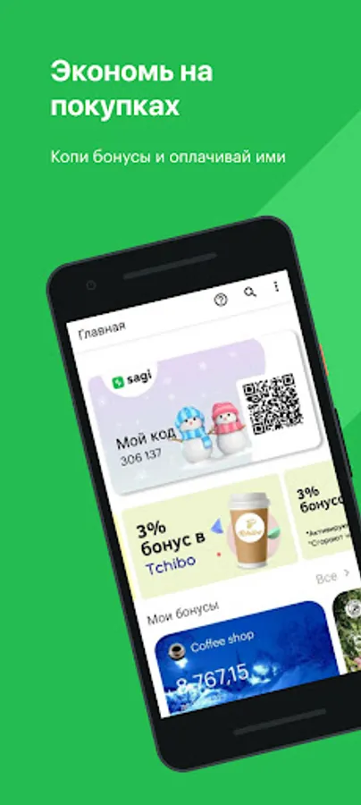 No more different plastic cards and paper questionnaires: just download and register in the Sagi app, make purchases and get bonuses. Track bonuses in your phone, save them and pay for purchases with bonuses. In order to accrue bonuses, you just need to tell your phone number to the cashier.