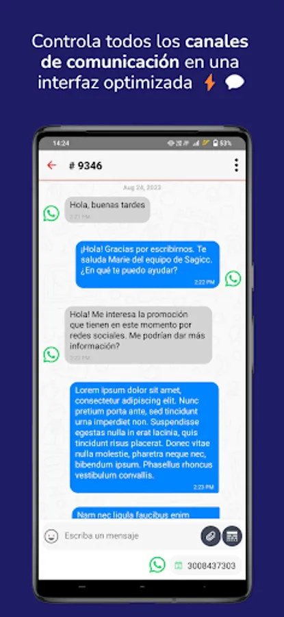 Comunícate oportunamente con multitudes de clientes y ofrece una experiencia de atencion inteligente, en cualquier momento y lugar. Con la nueva Sagicc App, el equipo de atención al cliente de tu empresa tendrá el control total de los canales de comunicación a través de una herramienta ágil, optima y segura. Optimiza la gestión de la comunicación con tus clientes y confía en Sagicc para mantener un servicio de primera clase que garantice la satisfacción en cada interacción.
