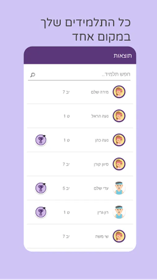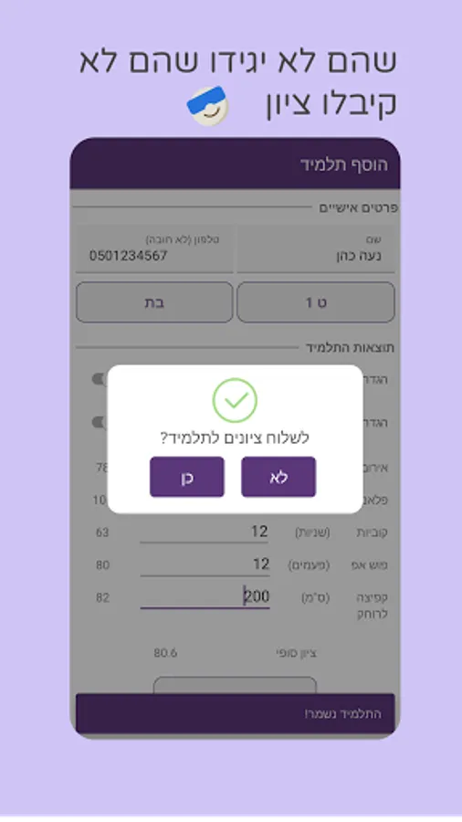 The app allows you to give up the need for a page and a pen, from now on you can enter the students' results directly into the app and get their score at that moment!