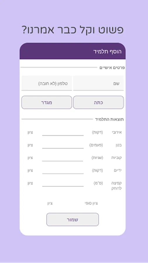 An innovative application that enables tracking, storage and calculation of students' results in the fitness and sports signal tests held in the various schools in Israel.