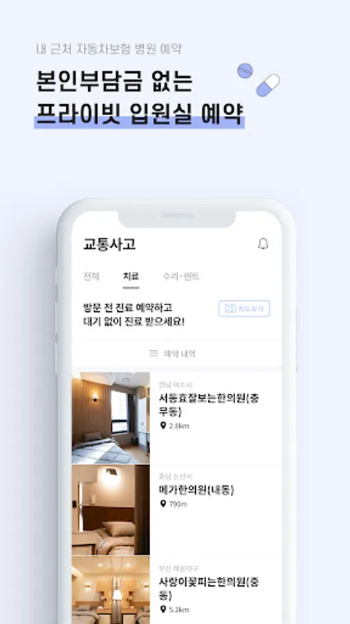 ※ In addition, when you are not sure how to receive treatment, you can find a private hospital room (1-2 person room) and oriental medicine hospital with good facilities that can be treated with auto insurance near you, and help you make a reservation for treatment.