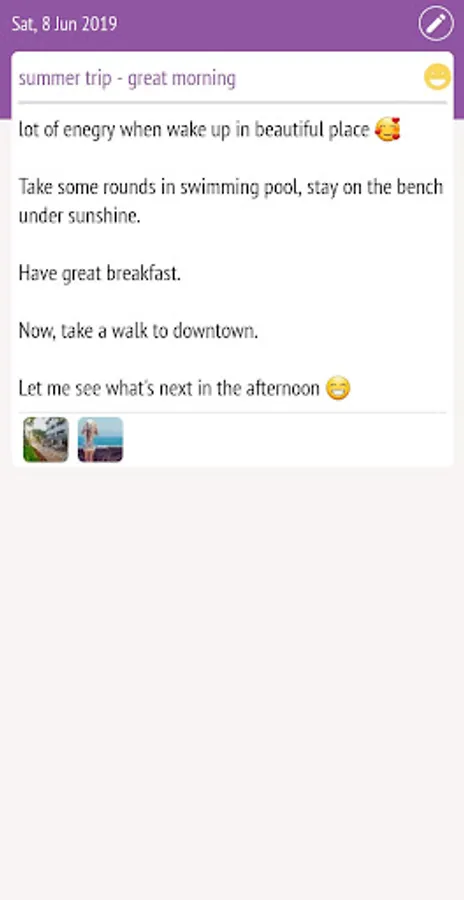 If you are a guy who loves writing, it's your choice. Write down your notes, your stories... everywhere. Nothing better because it allow you put photos, moods... inside it too.