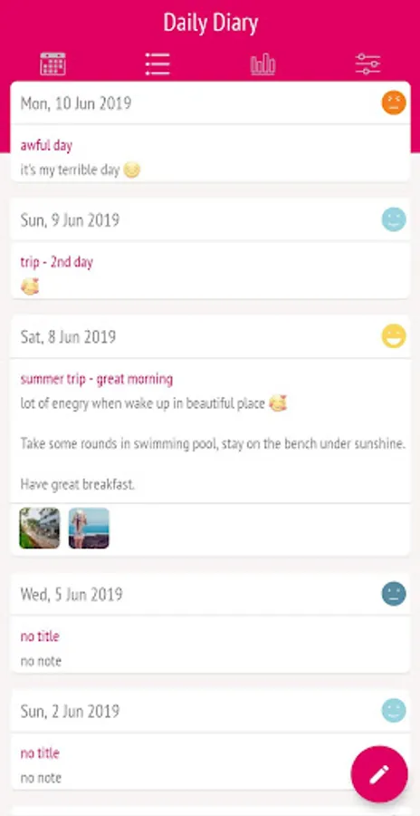 Keep your great and wonderful moments in secret. Easy to create a note with your feeling/photos.