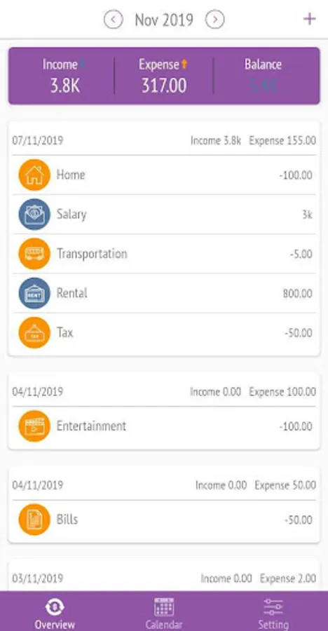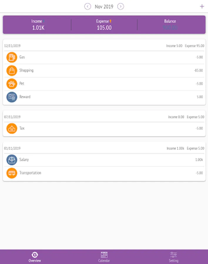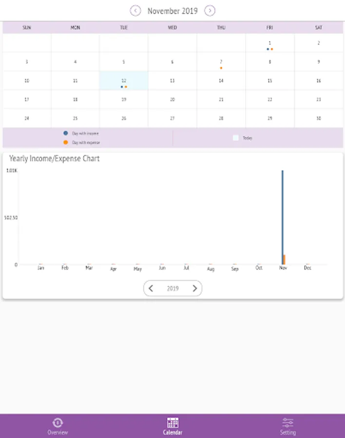 ★ We provide the calendar view. It's easy for user to use the app and easy to keep track all transactions.