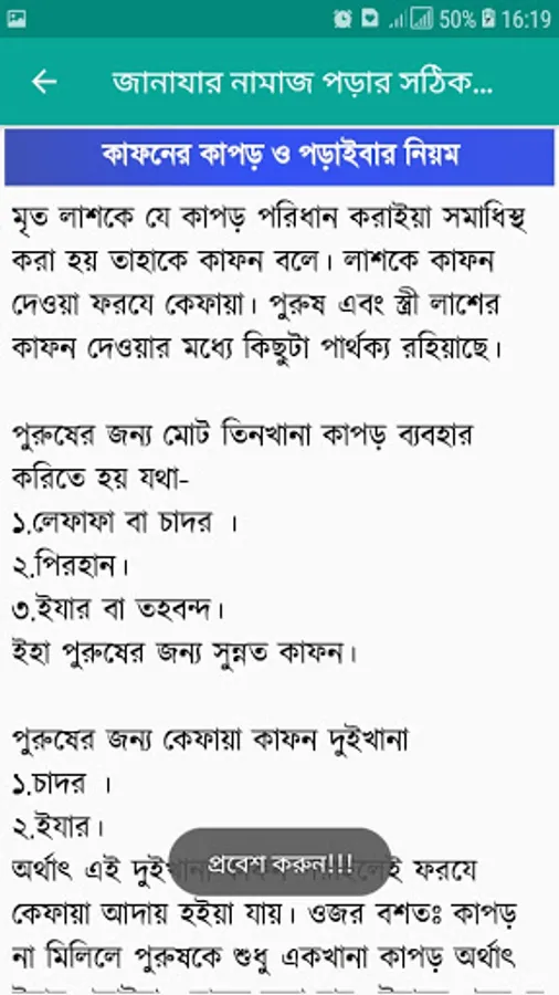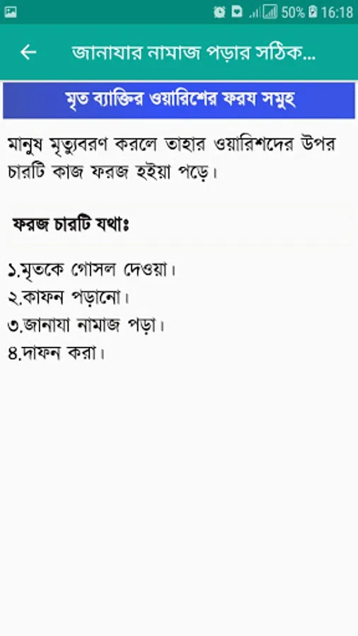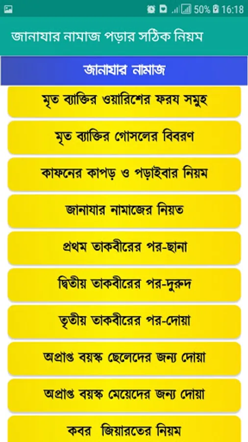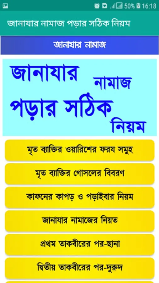 জানায়ার নামাজ সম্পর্কিত সকল গুরুত্বপূর্ন বিষয় নিয়ে অ্যাপটি তৈরি করা হয়েছে।