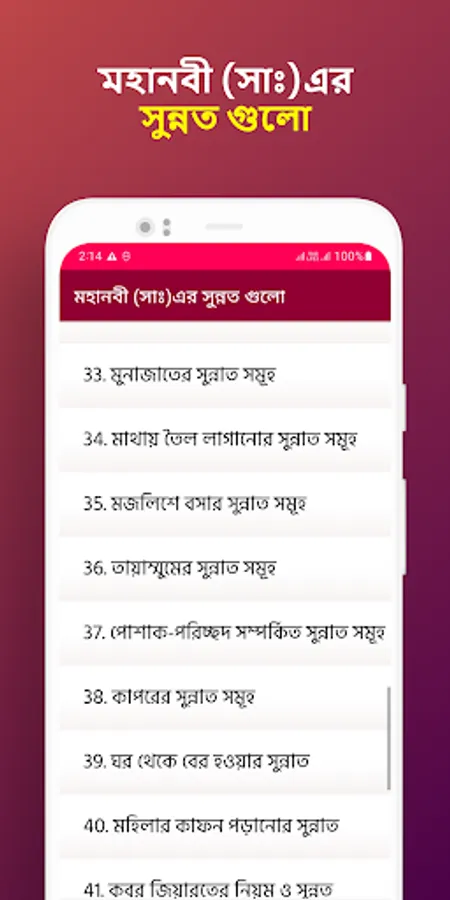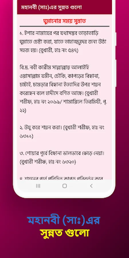 সুন্নাত পালন করা সকল মুসলমানদের অবশ্যই কর্তব্য। এক জন প্রকৃত মুসলমানের উচিত মহানবী (সাঃ) এর জিবনী মেনে চলা এবং তার সুন্নত সকল অনুসরন করা। আমাদের অ্যাপে প্রিয় নবী হযরত মুহাম্মদ (সাঃ) এর সকল সুন্নত সম্পর্কে জানতে পারবেন।
