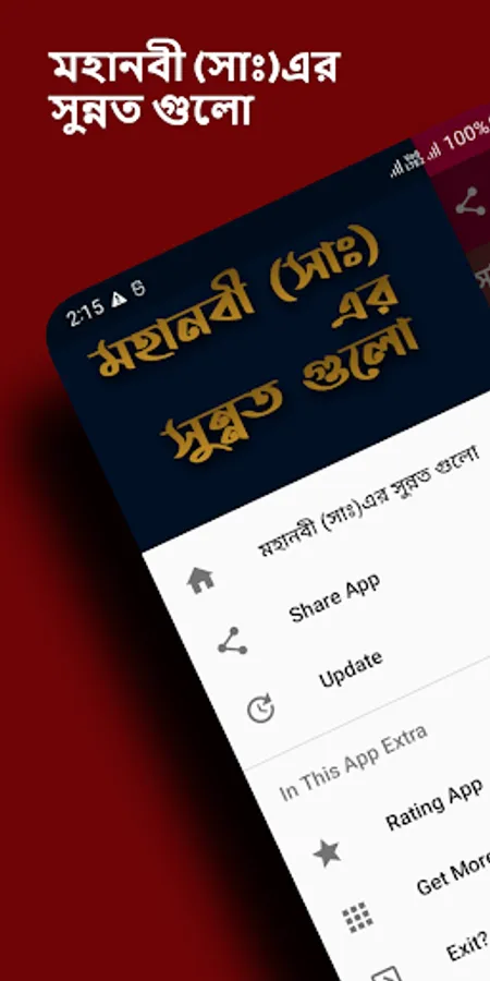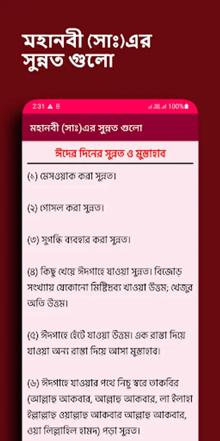 যা যা থাকছে আমাদের অ্যাপে:-***ঘরে প্রবেশ এবং বের হওয়া সুন্নত সমুহ***তায়াম্মুমের সুন্নাতসমূহ***সুন্নাতে মুয়াক্কাদা***সকল সুন্নাতের অ্যাপ***সুন্নাহ সলাত***রাতের সলাহ***মহানবীর সুন্নত কাজ সমূহ***নবীজির সুন্নত কাজ***মৃত্যুকালীন সুন্নাত সমুহ***ঘুমানোর সুন্নাত সমূহ***কবর জিয়ারতের সুন্নাতসমূহ***নামাজের সুন্নাত***টয়লেটে প্রবেশ এবং বের হবার সময় দো’আ***জুতা পরিধান করা