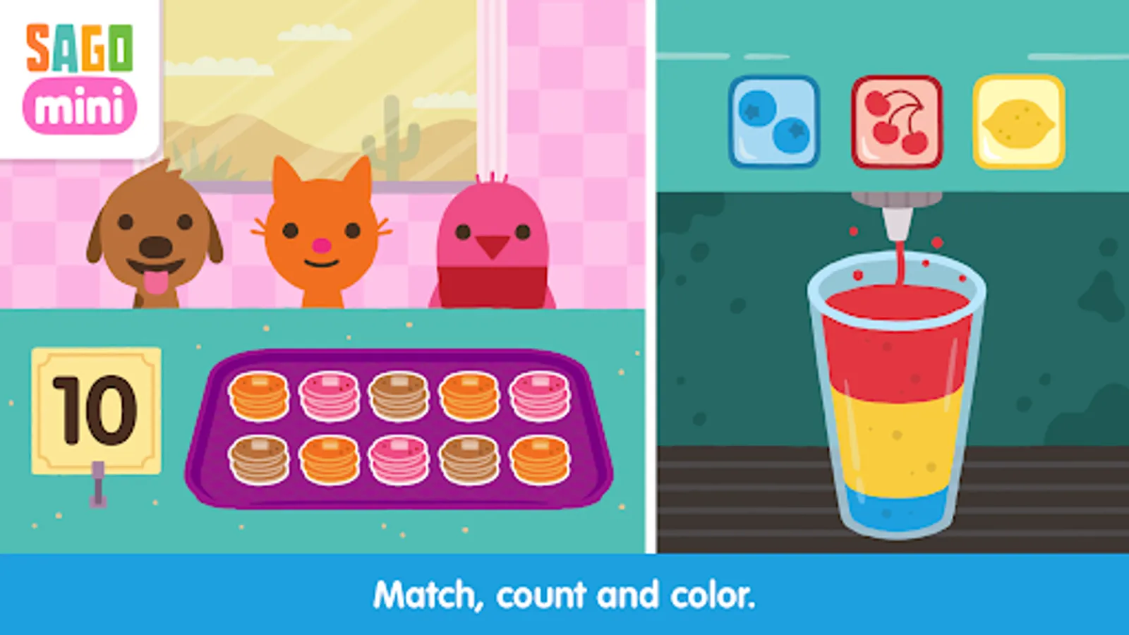 Hungry for fun? Help feed your friends as you learn about shapes, numbers and colors. This playful new app is perfect for toddlers and preschoolers. Pet Cafe includes three educational activities. Your little one will be begging for seconds and thirds... and fourths!