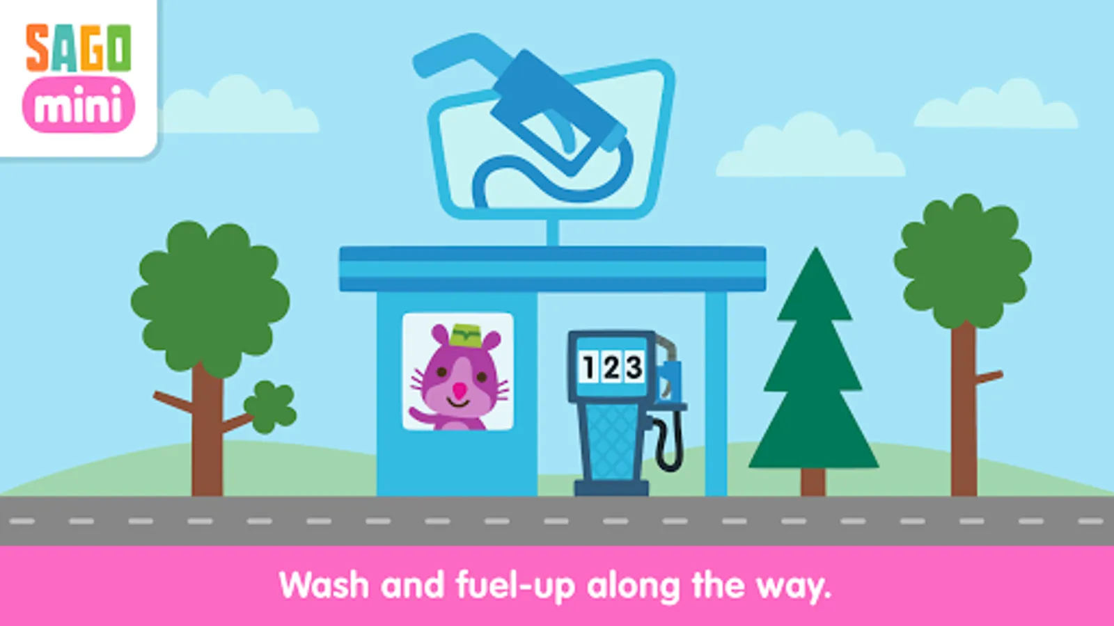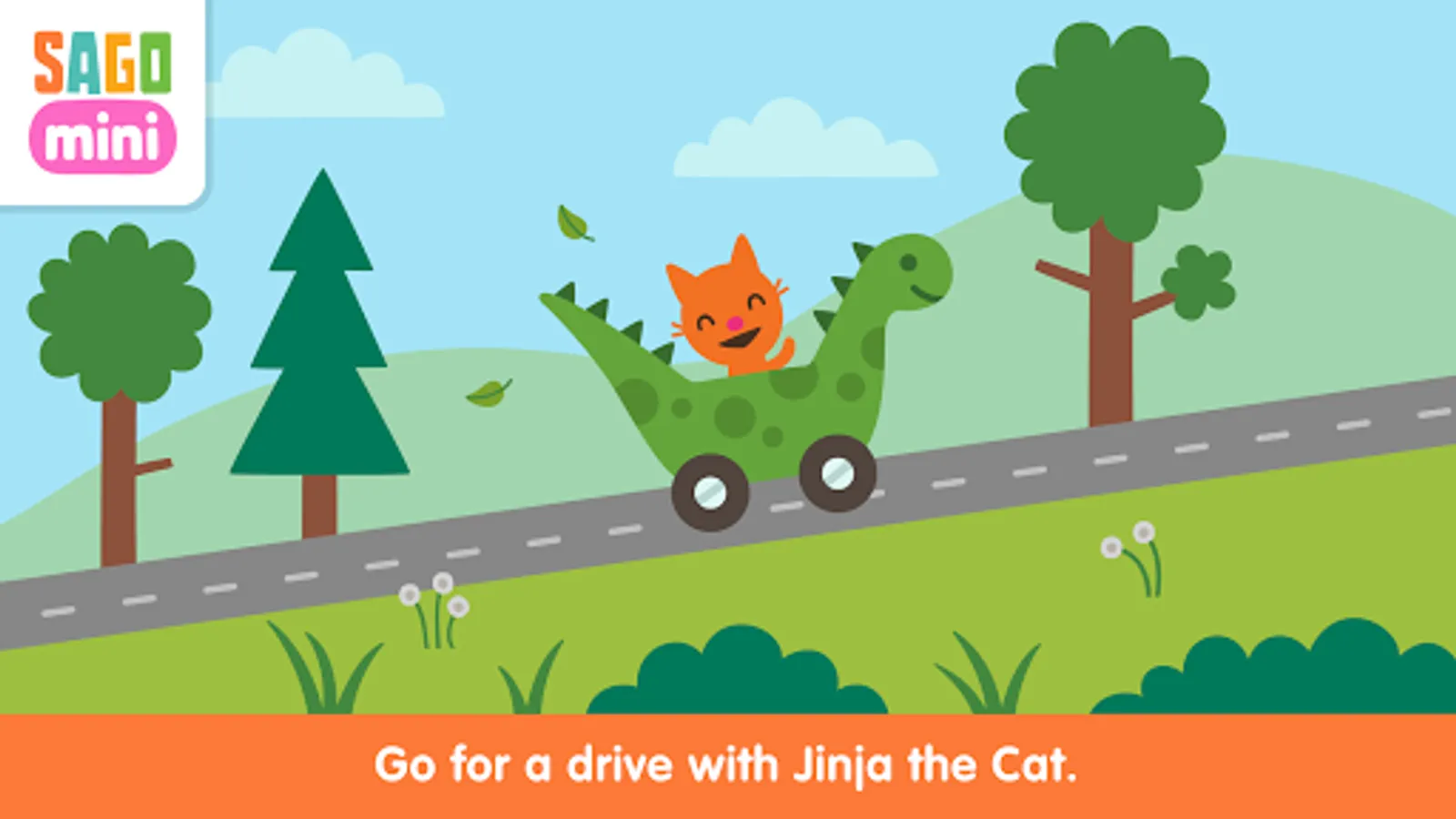 Go for a fun-filled drive with Jinja the cat. Pick a destination, select a vehicle and hit the road. What will Jinja drive today? Choose a sporty racing car, a jumpy jeep or a funny pickle car! Stop along the way to wash and fuel up. When the drive is done, a happy welcome is waiting for you!