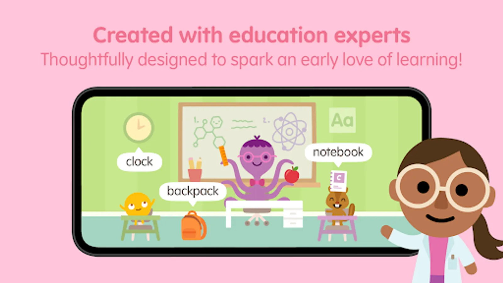 Created with early education & play experts, your preschooler will learn English, math, literacy, science, & social-emotional skills with playful educational games.