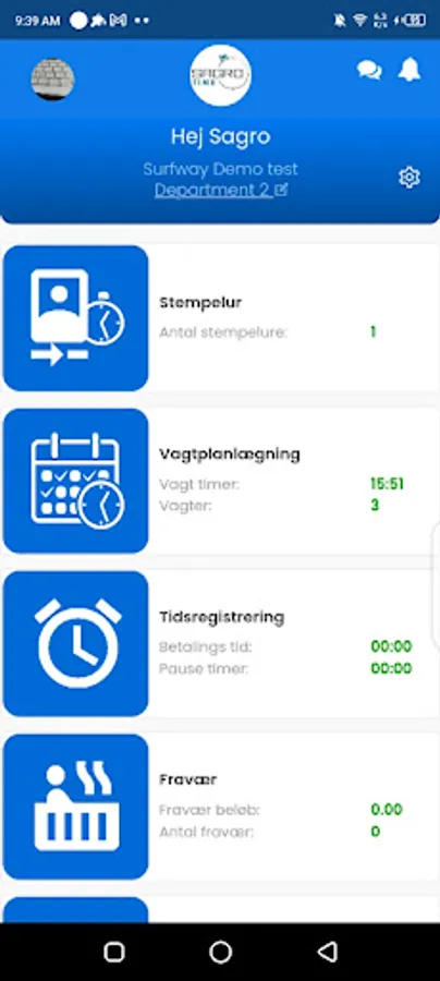 SAGRO Time is a stable and reliable system on which employees record arrival and departure times, as well as check-in and check-out between different departments in the company.