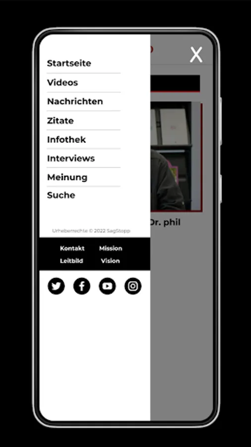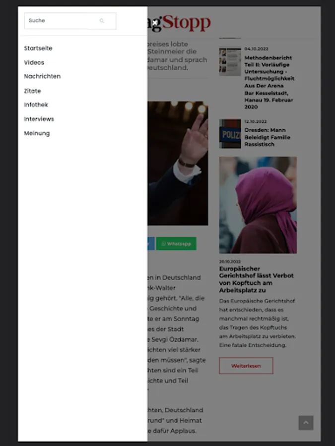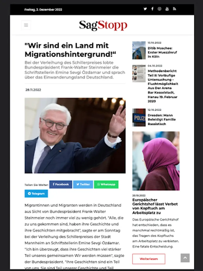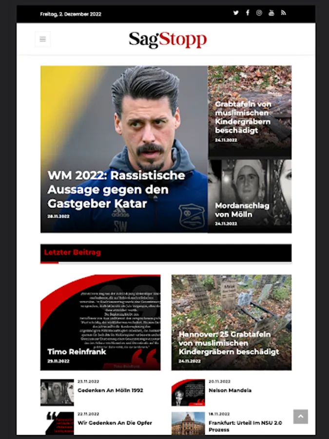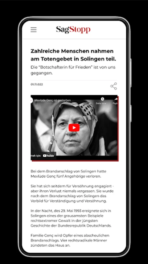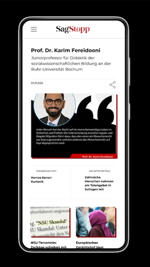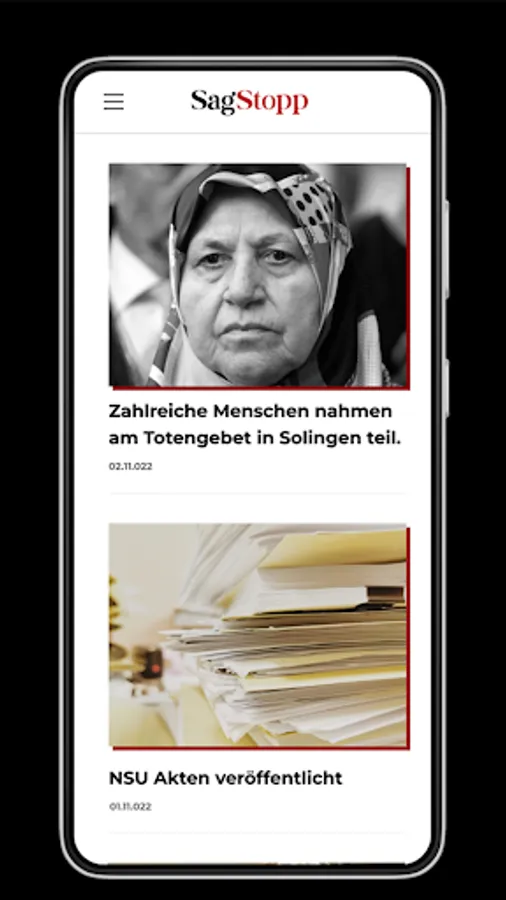On the mobile application of the German news site "Sag Stopp" you can access interviews, infographics and daily breaking news.