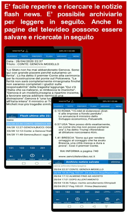 This app is dedicated to the RAI National and Regional Teletext service and allows easy navigation of the pages and flash news.