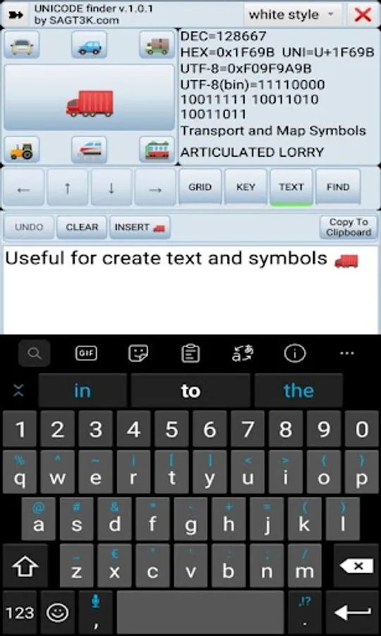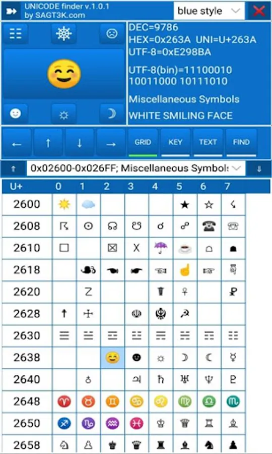 You can use this app as a Unicode finder as an explorer, text editor or advanced character finder.