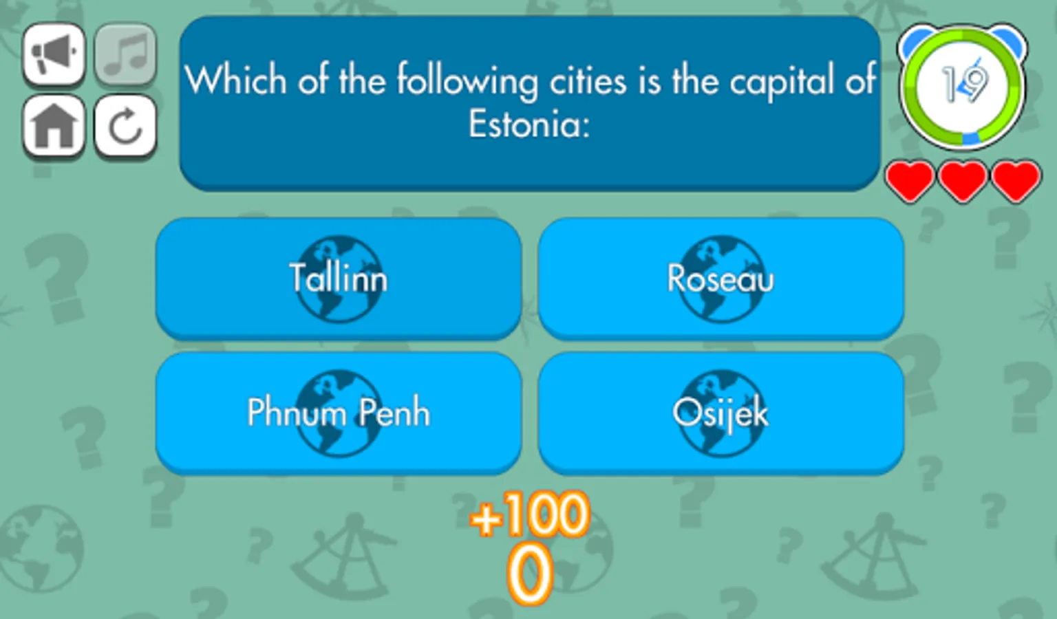- Questions based on 221 countries, 1153 cities, 249 images, 11 seas, 140 languages, 83 POIs, 81 currencies, 6 religions and more…