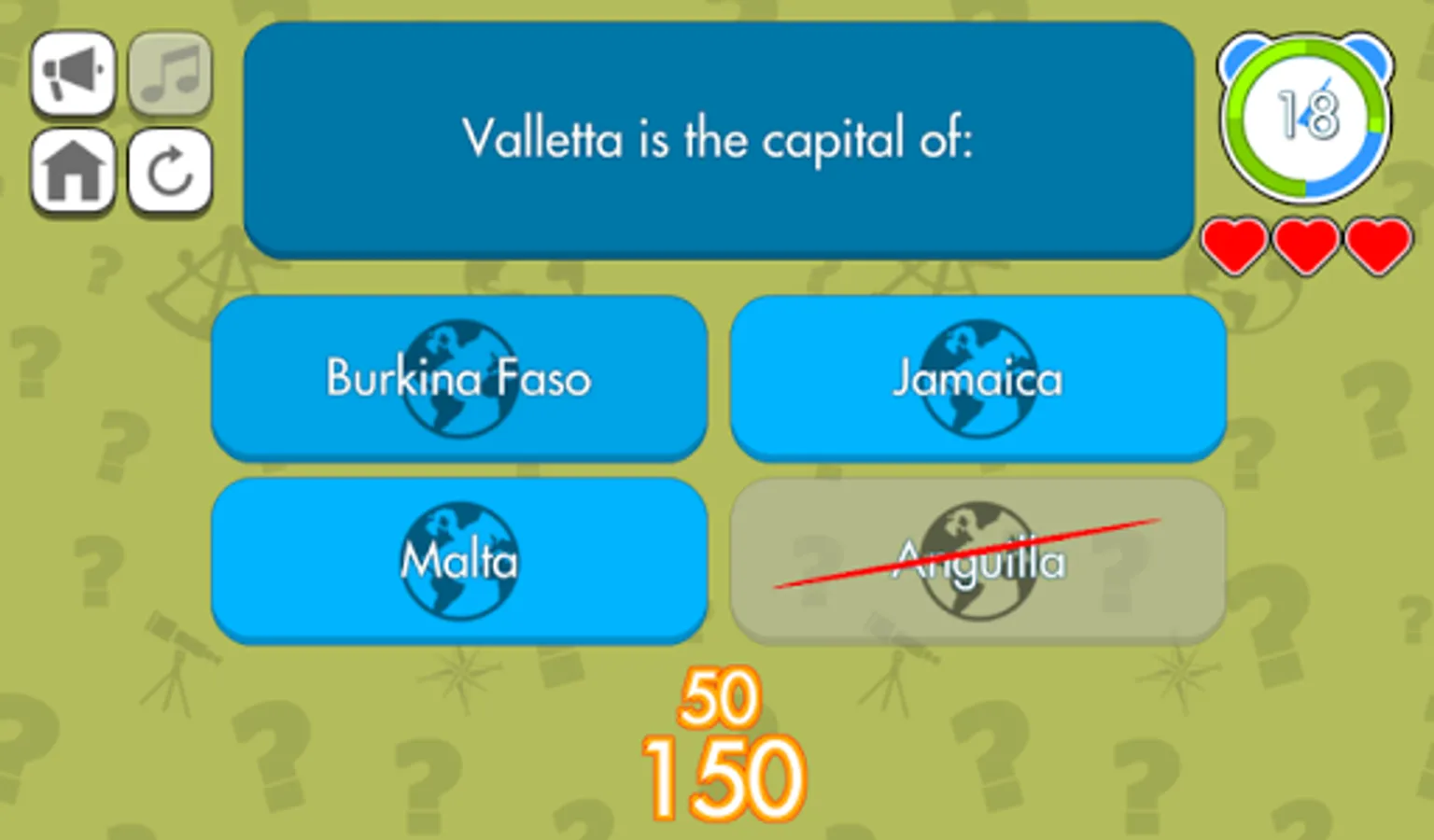 Geography Trivia is a unique trivia game based on a random questions generator engine, that can create thousands of questions. Come test your knowledge about geography.