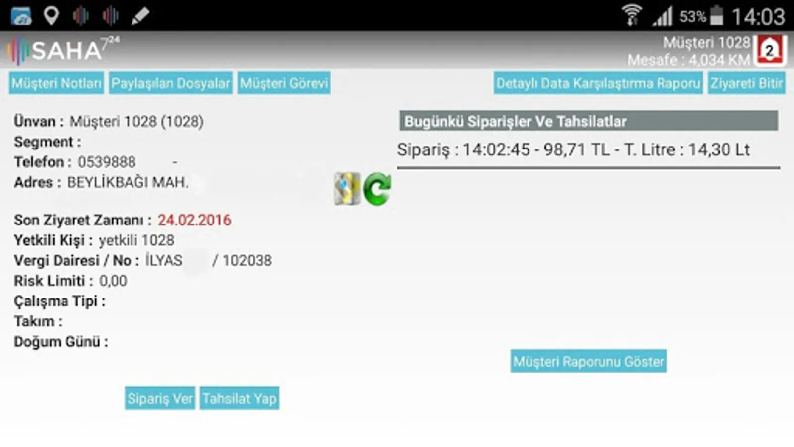 Another critical issue that we see a recovery in sales operations processes. sales up almost a critical process development to follow the current risk of the Customer. Salesperson or sales or collection-oriented work. Be aware of the risks when selling customers and also very critical of the lack of an application outside Saha724 for it. We are trying to bring solutions to facilitate the work of the sales representative. We provide the Saha724 integration with existing commercial package to manage the entire process (LOGO and running integrated with NETSIS).