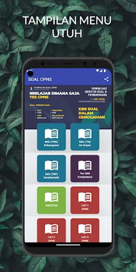 The "CPNS Test Question Collection" application is an application designed to help prospective civil servants (CPNS) prepare themselves to face the CPNS selection exam. This application provides useful features to help CPNS candidates improve their abilities in answering various types of questions that will appear in the CPNS exam.